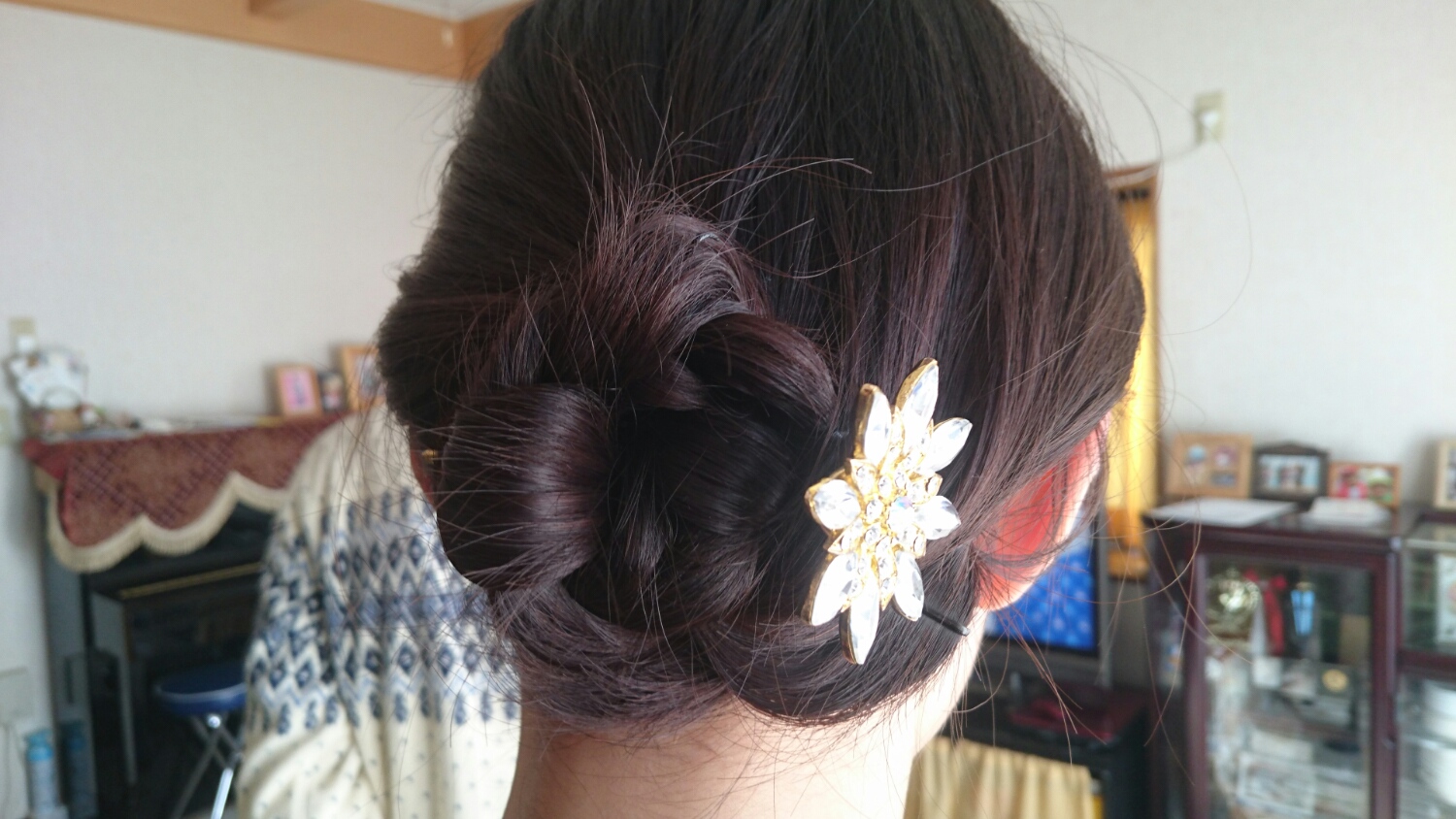 頭はウィッグ!だってスタイリングできないんだもん。一月堂さんのおりぼん。