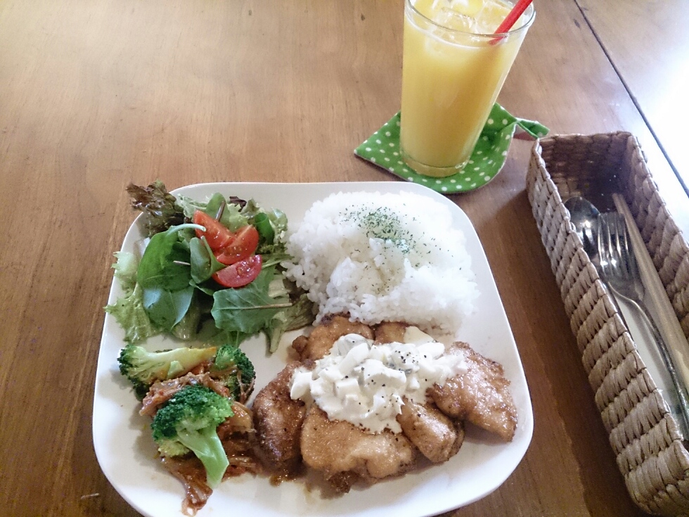 美味しいランチ。このあとチキン南蛮セットは売り切れちゃった!美味しかったよー(*^^*)このコースターも可愛い☆